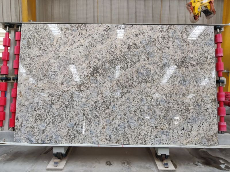 A white base granite with blue quartz and grey speckels a for a luxurious look in your projects