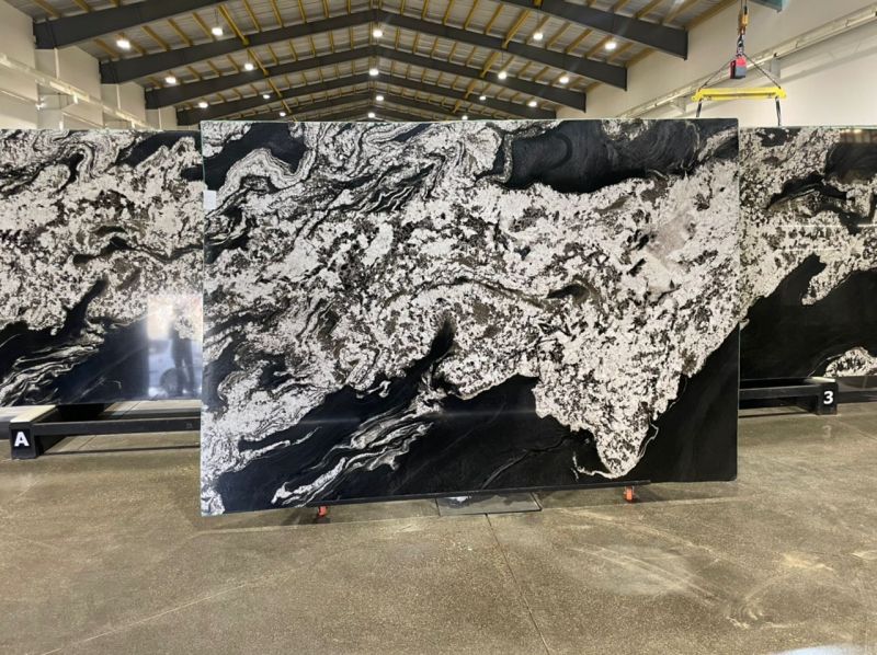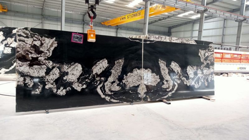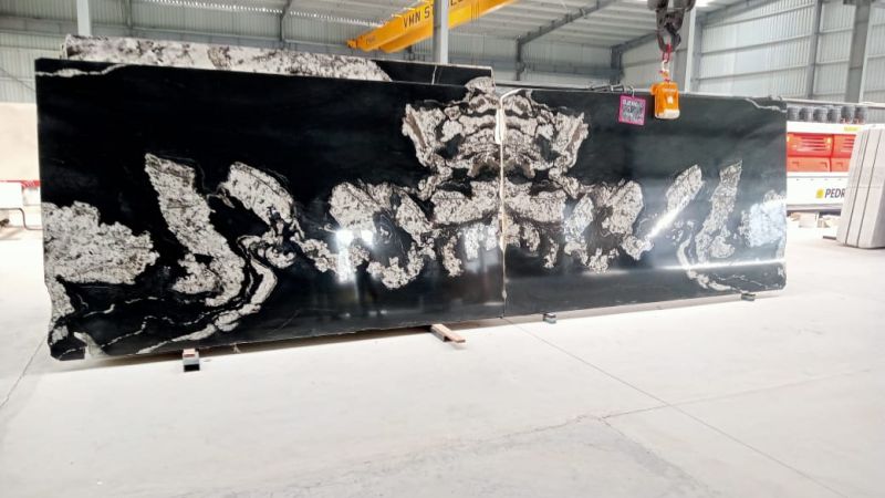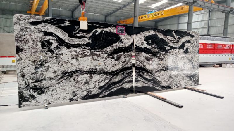 A very beautiful granite with black and white color combination with quartz and tourmaline crystals for backlit display applications and also can be used for flooring and facade applications in houses, hotels and other units.